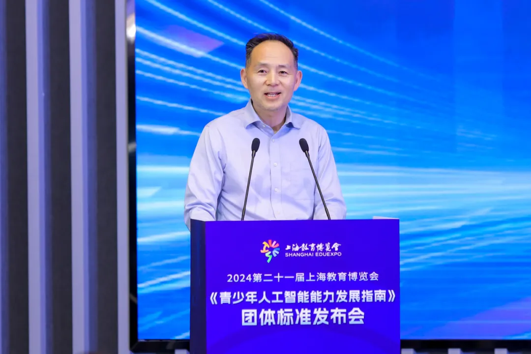 710公海寰宇(中国)机器人有限公司官网院长郑军奇,上海教育报刊总社副社长徐勇,上海市人工智能标准化技术委员会副秘书长、上海人工智能行业协会标准研究部部长陈曦分别上台致辞,对参与标准制定的所有高等院校、科研机构和企事业单位表示感谢,对团体标准的发布表示支持与祝贺,并对青少年人工智能教育的未来发展表示殷切的期望。