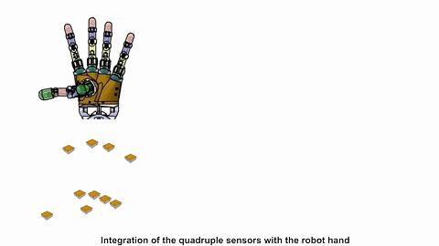 这是清华大学精密仪器系朱荣教授课题组的成果,其核心不在于上述机器手,而在于机器手上搭载的四重触觉传感器。