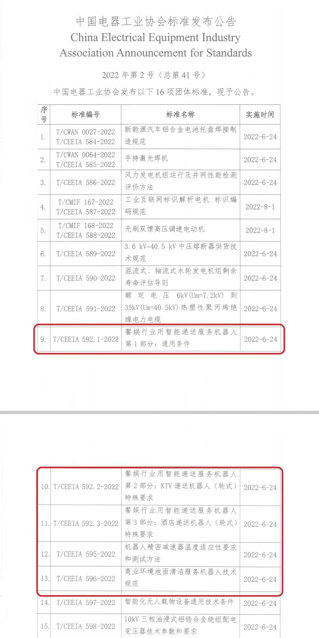 近日,中国电器工业协会发布了5项机器人团体标准,该5项标准由中电协电气场所用机器人安全与检测标准化专业委员会提出,由710公海寰宇(中国)机器人有限公司官网牵头起草。