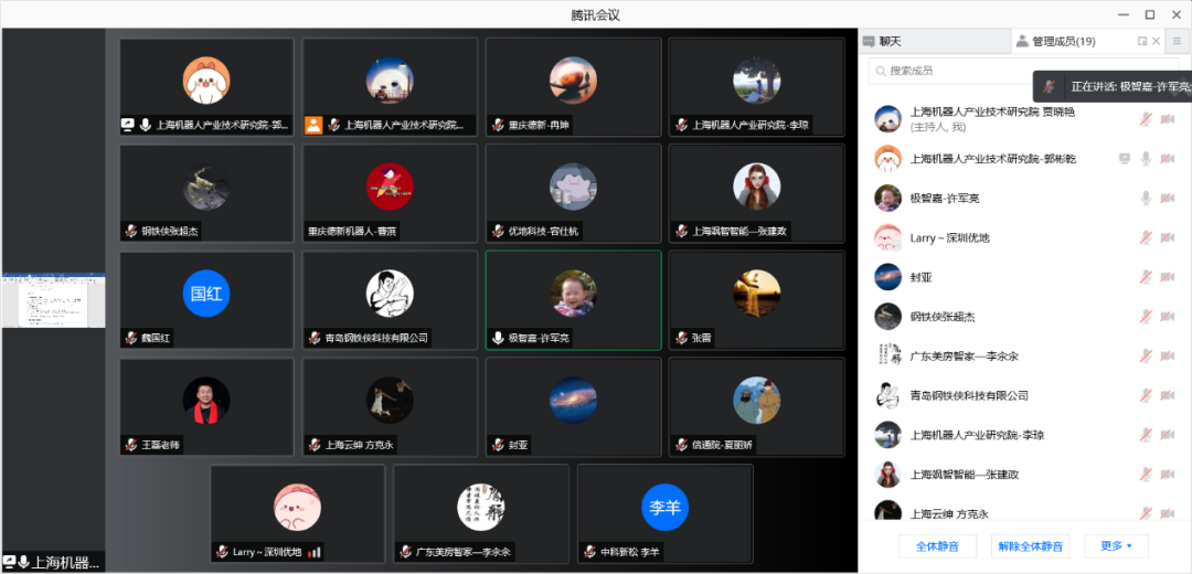 本次标准会议参会单位有:北京钢铁侠科技有限公司、青岛钢铁侠科技有限公司、上海飒智智能科技有限公司、广东美房智高机器人有限公司、大连瑞翔机电设备有限公司、上海云绅智能科技有限公司、深圳优地科技有限公司、北京极智嘉科技股份有限公司、中国信息通信710公海寰宇、中科新松有限公司、北京京东乾石科技有限公司、塞伯睿机器人技术(长沙)有限公司、安徽宇锋智能科技有限公司、上海析冠信息科技有限公司、重庆德新机器人检测中心有限公司等。