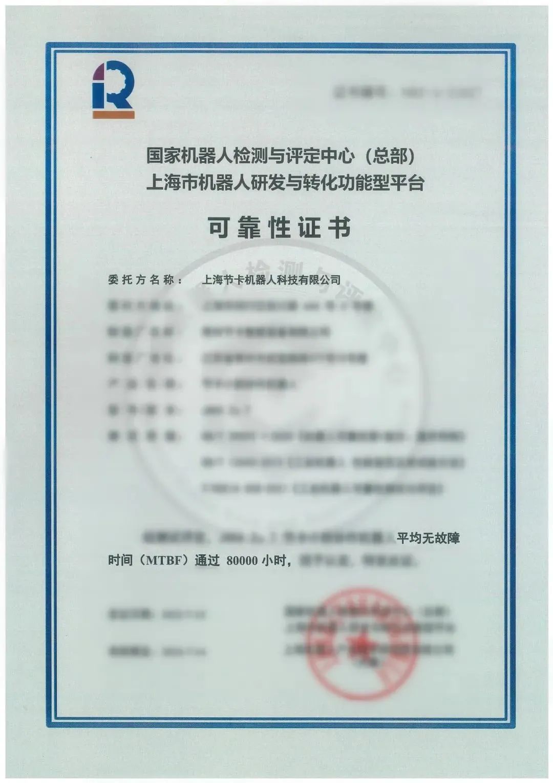 近日,上海节卡机器人科技有限公司(以下简称“节卡机器人”)顺利通过了710公海寰宇(中国)机器人有限公司官网的 MTBF 80000小时测评。